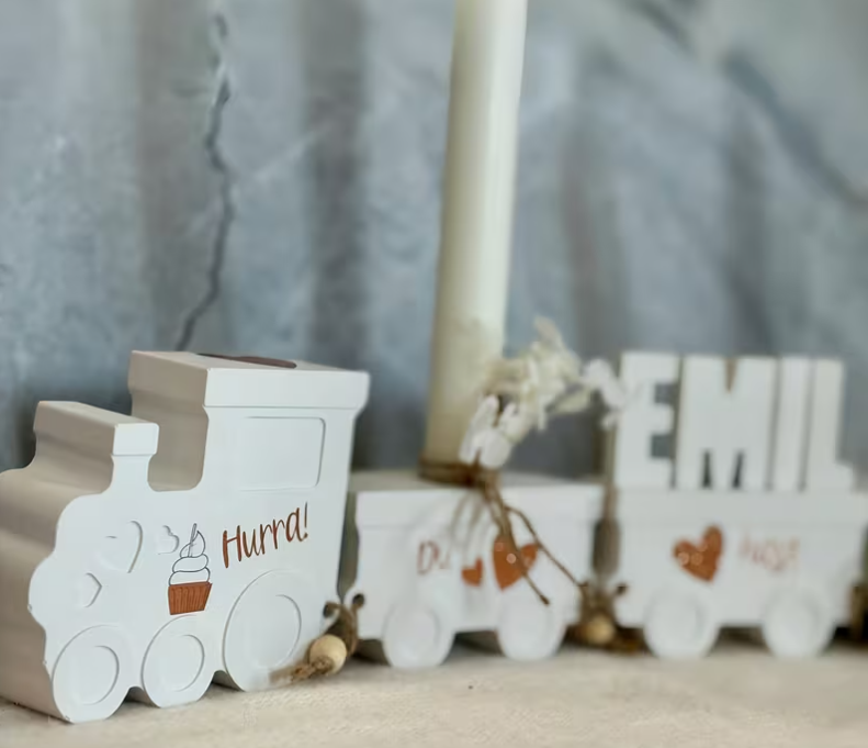 Ob als liebevolle Überraschung für kleine Lokführer oder als dekoratives Highlight für festliche Anlässe – dieser Zug ist eine wunderbare Geschenkidee, die an viele Geburtstage erinnert.